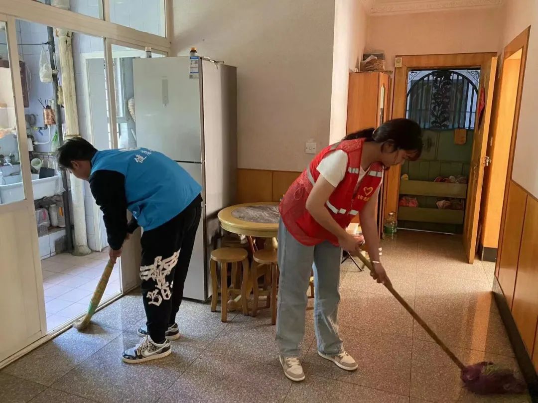 农职青年志愿者先来到了84岁老人黄爷爷家中。在到达老人家中之前,志愿者们了解到,老人现属于独居状态,是退役军人,他身患白肺病等多种疾病。在老人家中,志愿者们帮助老人打扫屋子,整理家中过期物品等活动,还为老人送上了提前准备好的生活用品。