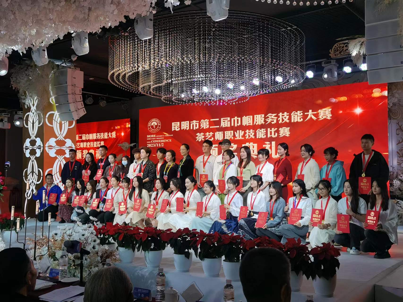 本次赛事中,云农职云安产业学院选派了22级酒店管理与数字化运营专业10名同学参加了茶艺赛项的比赛。10名同学共获茶艺赛项特金奖6项,金奖4项,团队展演赛最佳技术奖7项,云安产业学院获最佳组织奖。