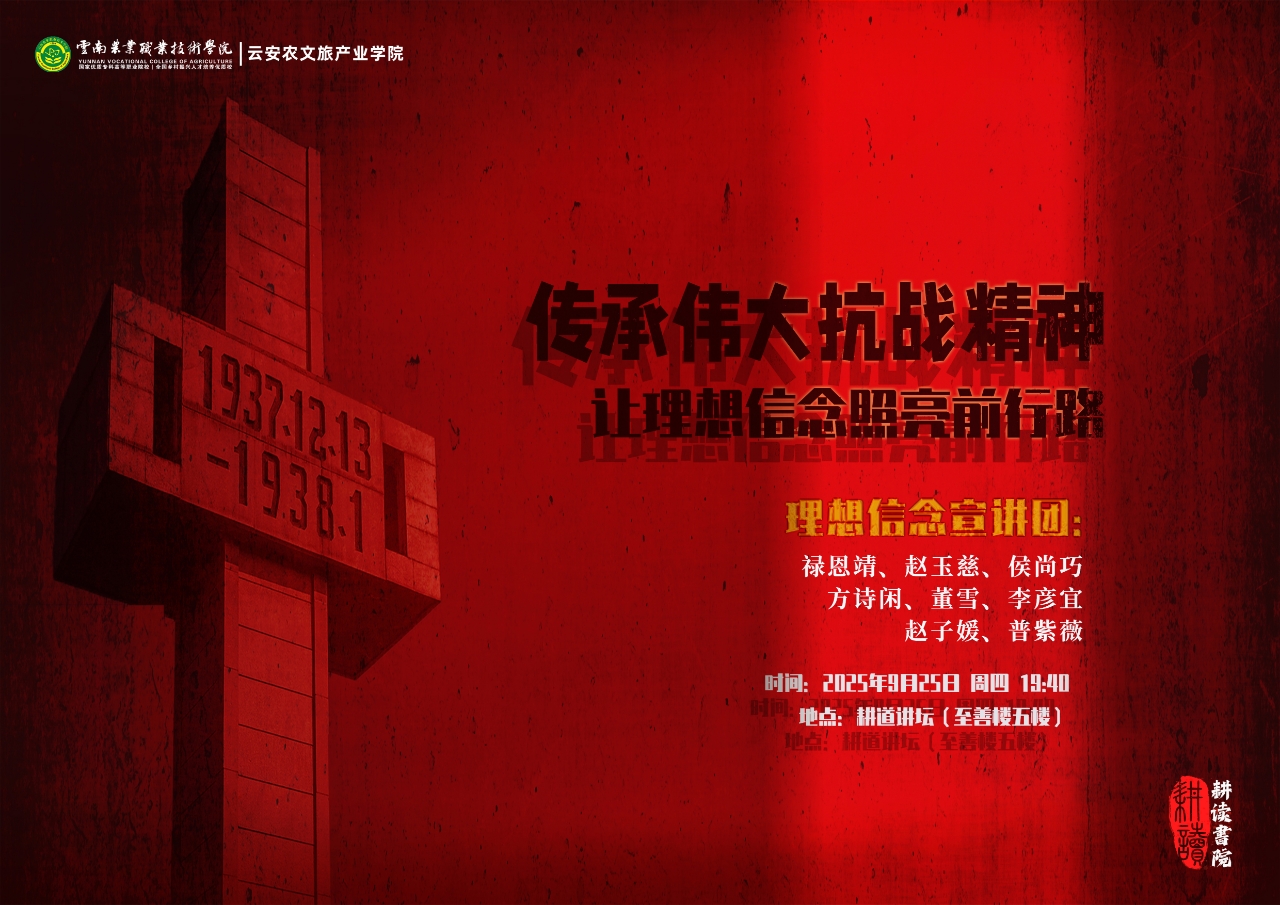 2025年9月25日19:40,我院“一站式”学生社区书社组织开展2025-2026学年秋季学期第三期耕道讲坛一一理想信念宣讲团第五期。