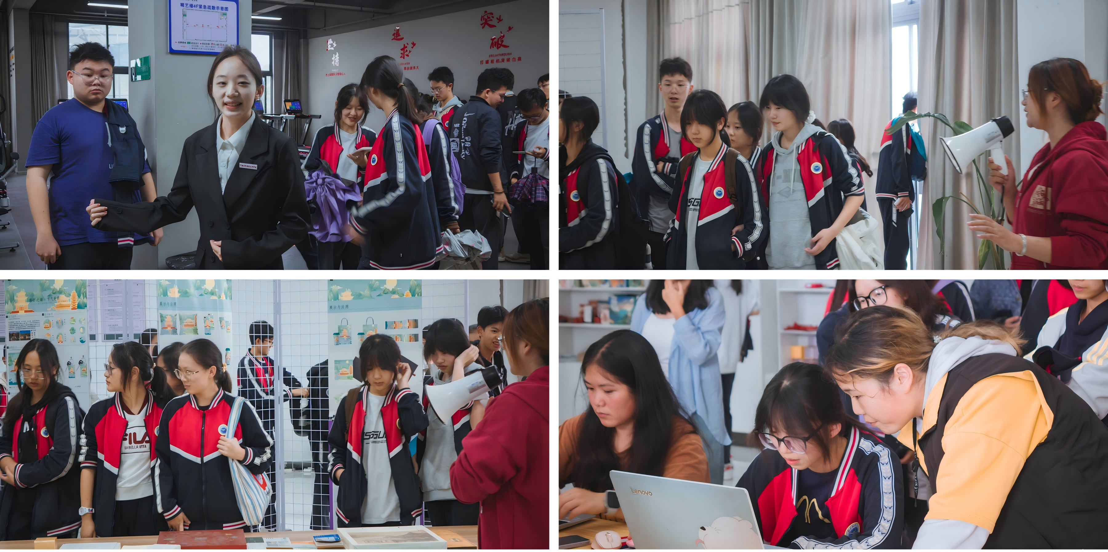 在学院讲解员的细致引导下,师生们先后走访了烹饪实训室、酒水实训室、设计实训室、包装策划实训室、健身房、形体礼仪室等,体验了专业技能的魅力,为他们打开了创意与实践相结合的新世界,也让学生们对身心健康与职业形象有了更深的理解。