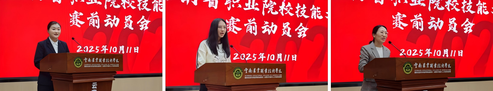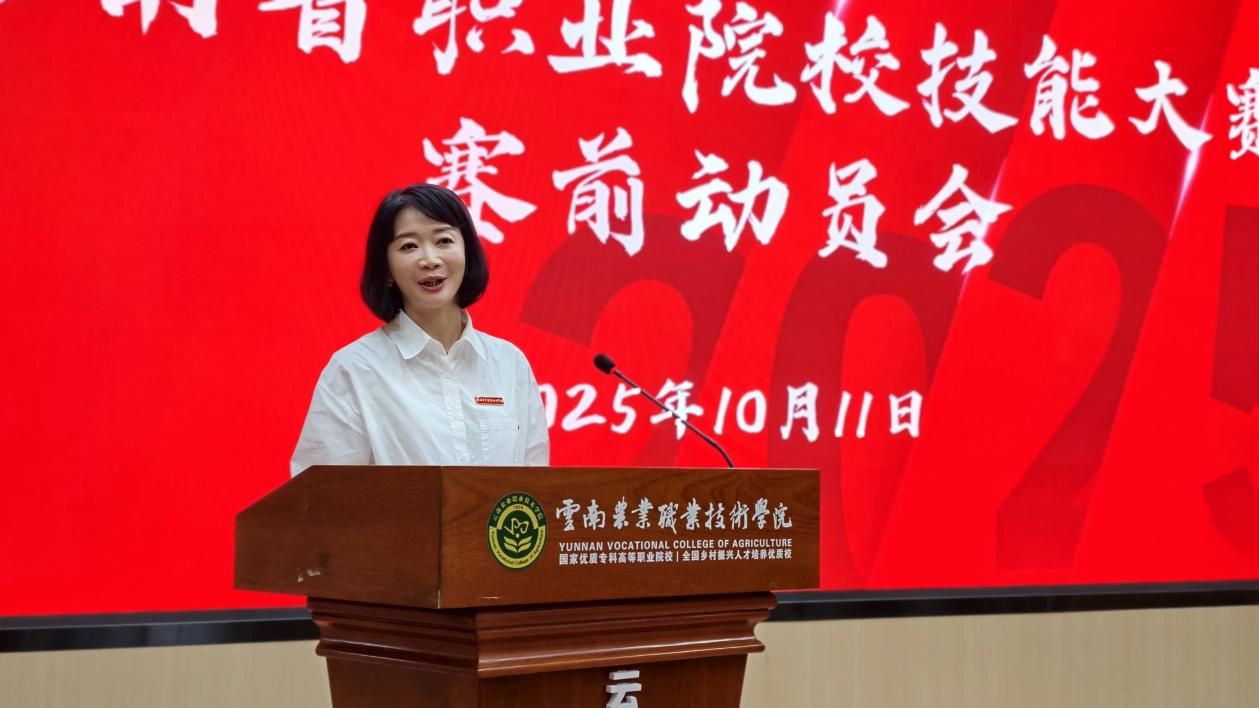 2025年10月11日下午,我院在耕道讲坛组织开展“2025年云南省职业院校技能大赛赛前动员会”。学院党总支书记李一源、院长张杜娟、副院长王雪莲,教学办公室主任田志军、各赛项指导教师及全体参赛学生参会。会议由王雪莲副院长主持。