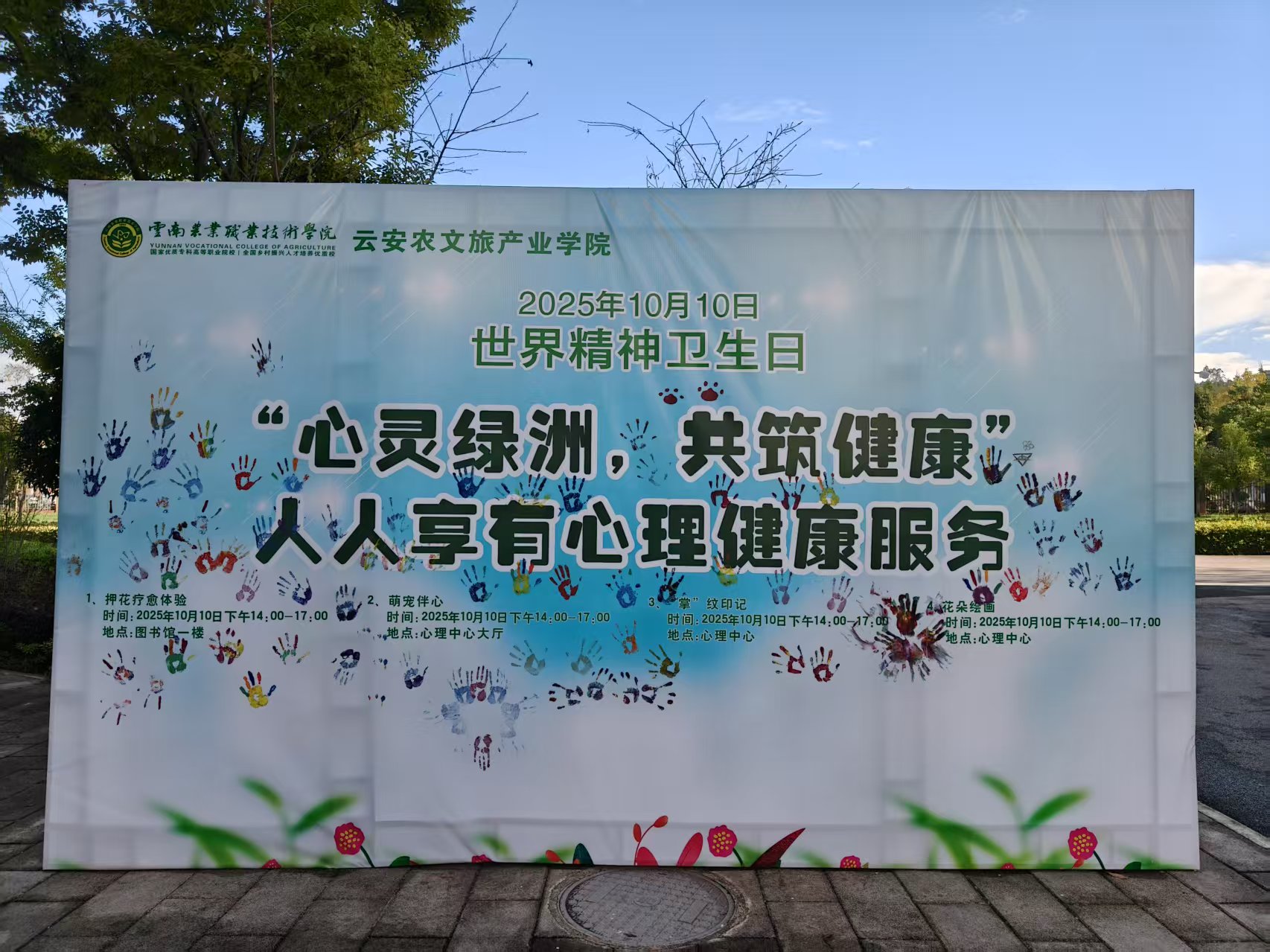 云安农文旅产业学院紧扣“心灵绿洲,共筑健康”主题,组织开展世界精神卫生日系列活动。学院依托农文旅学科特色,将植物疗愈、动物辅助干预及艺术表达治疗等专业方法融入心理健康教育实践,为全院师生构建了多层次、多维度的心理健康支持体系,创新打造了集体验、疏导、科普于一体的心理健康服务平台。