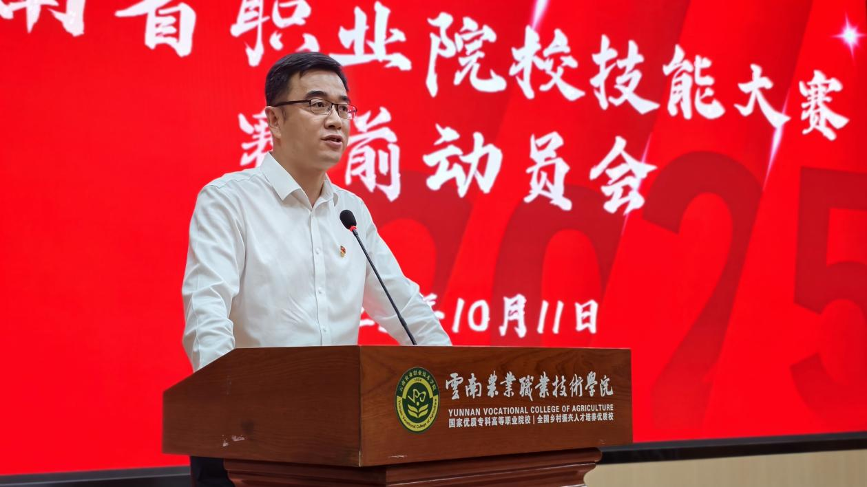 2025年10月11日下午,我院在耕道讲坛组织开展“2025年云南省职业院校技能大赛赛前动员会”。学院党总支书记李一源、院长张杜娟、副院长王雪莲,教学办公室主任田志军、各赛项指导教师及全体参赛学生参会。会议由王雪莲副院长主持。
