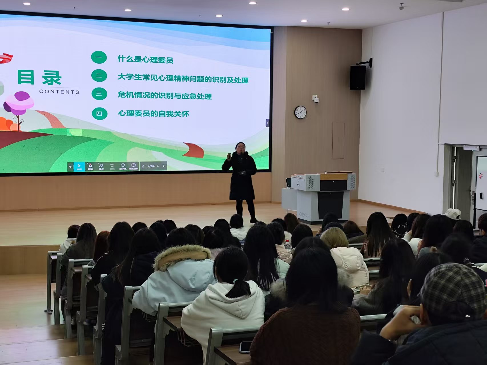 12月3日,学院特邀国家二级心理咨询师、昆明市心理危机研究与干预中心专家杨婷,开展“大学生常见心理精神问题的识别及处理”专题讲座。杨婷老师结合教育部相关工作要求与校园心理服务实际,针对学业压力、人际困扰、情绪焦虑等高频问题,拆解心理危机典型信号与识别技巧。她强调,心理委员作为校园心理防护“前哨兵”,需做好“倾听者”与“联络员”,在共情陪伴同学的同时,对持续情绪低落、行为异常的情况及时对接辅导员与学校心理中心。讲座还分享了低门槛求助渠道与干预流程,在互动答疑环节有效破解了心理委员的实操困惑。