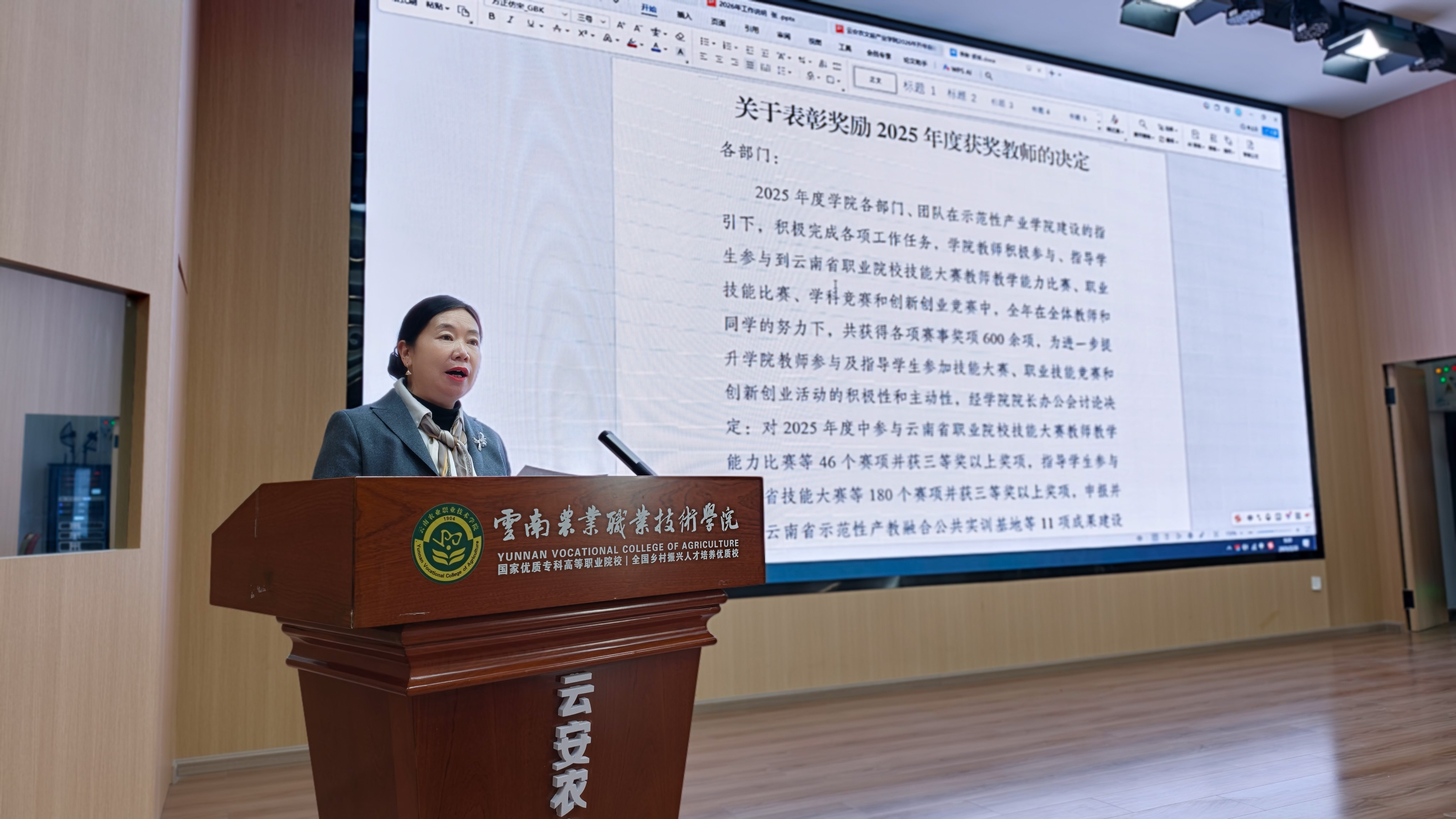 王雪莲副院长宣读《学院关于表彰奖励2025年度获奖教师的决定》