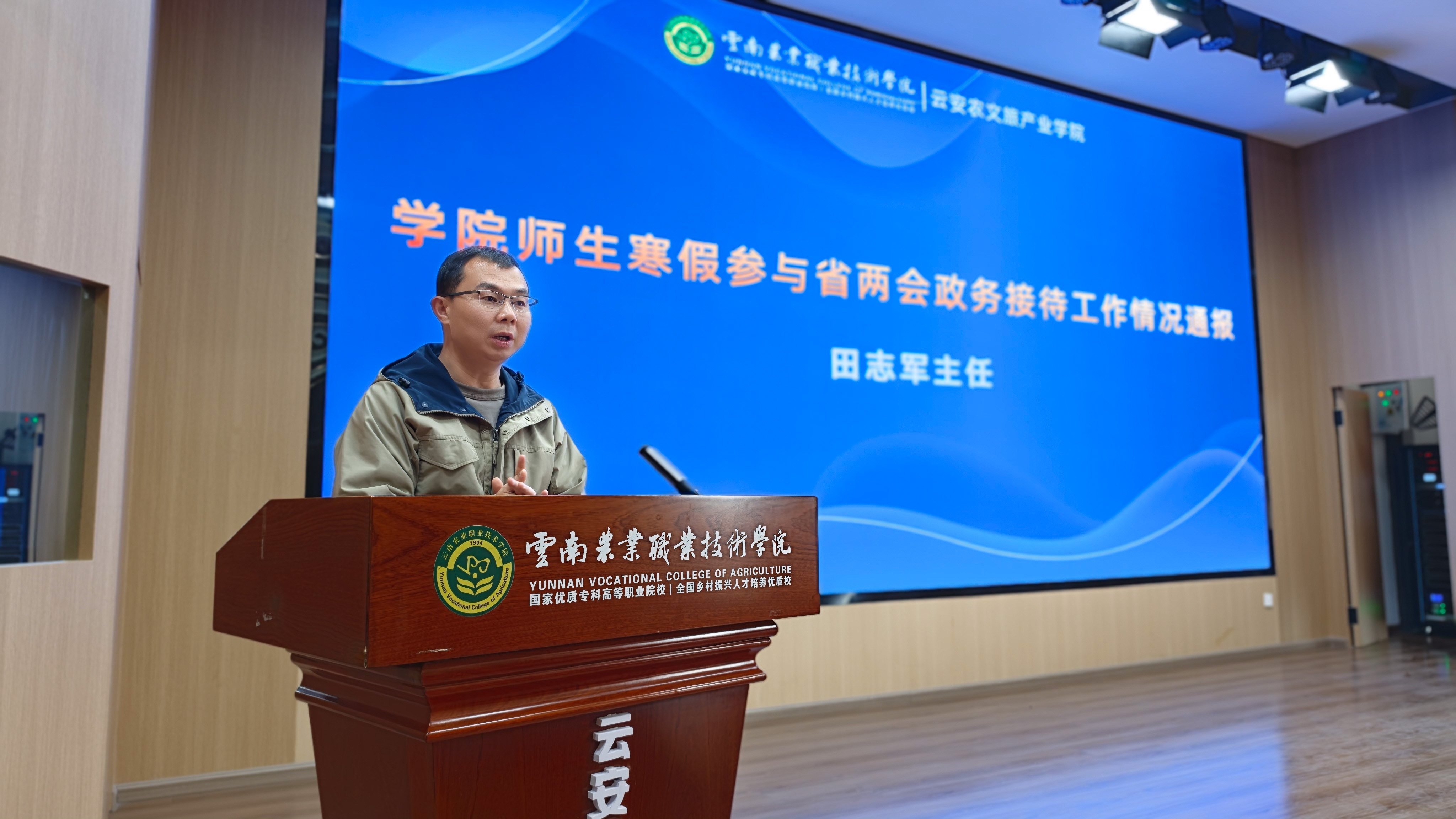 学院教学办公室主任田志军就寒假期间学院师生参与省两会政务接待工作情况进行专项通报,全面复盘了本次实践服务工作的整体成效,系统总结了实践育人工作的经验成果与优化方向,为学院后续深化实践育人、提升学生综合素养积累了宝贵经验。
