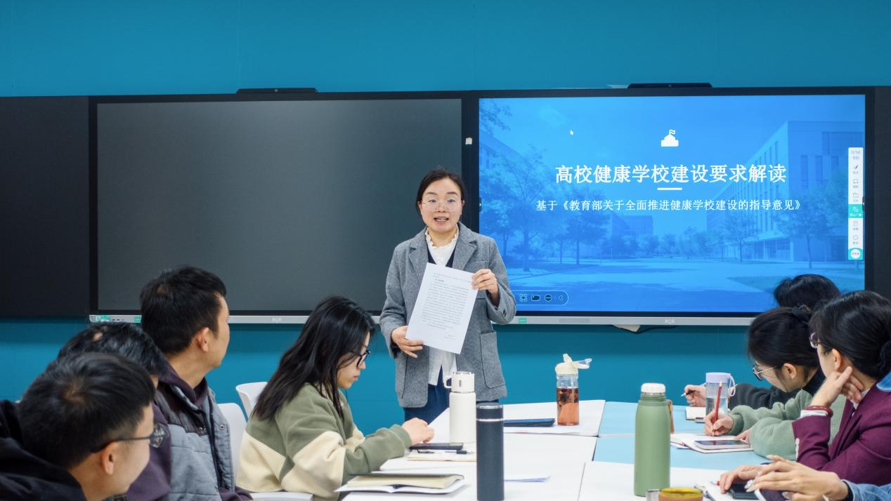会上,李萍副书记领学《教育部关于全面推进健康学校建设的指导意见》,传达了高校健康学校建设参考标准。李宏伟副院长就教师引领体育锻炼、学生体育锻炼习惯养成、体育课程内容改革、体育器材借用方式等方面提出建议,聚焦体育在“健康校园”中的重要作用。