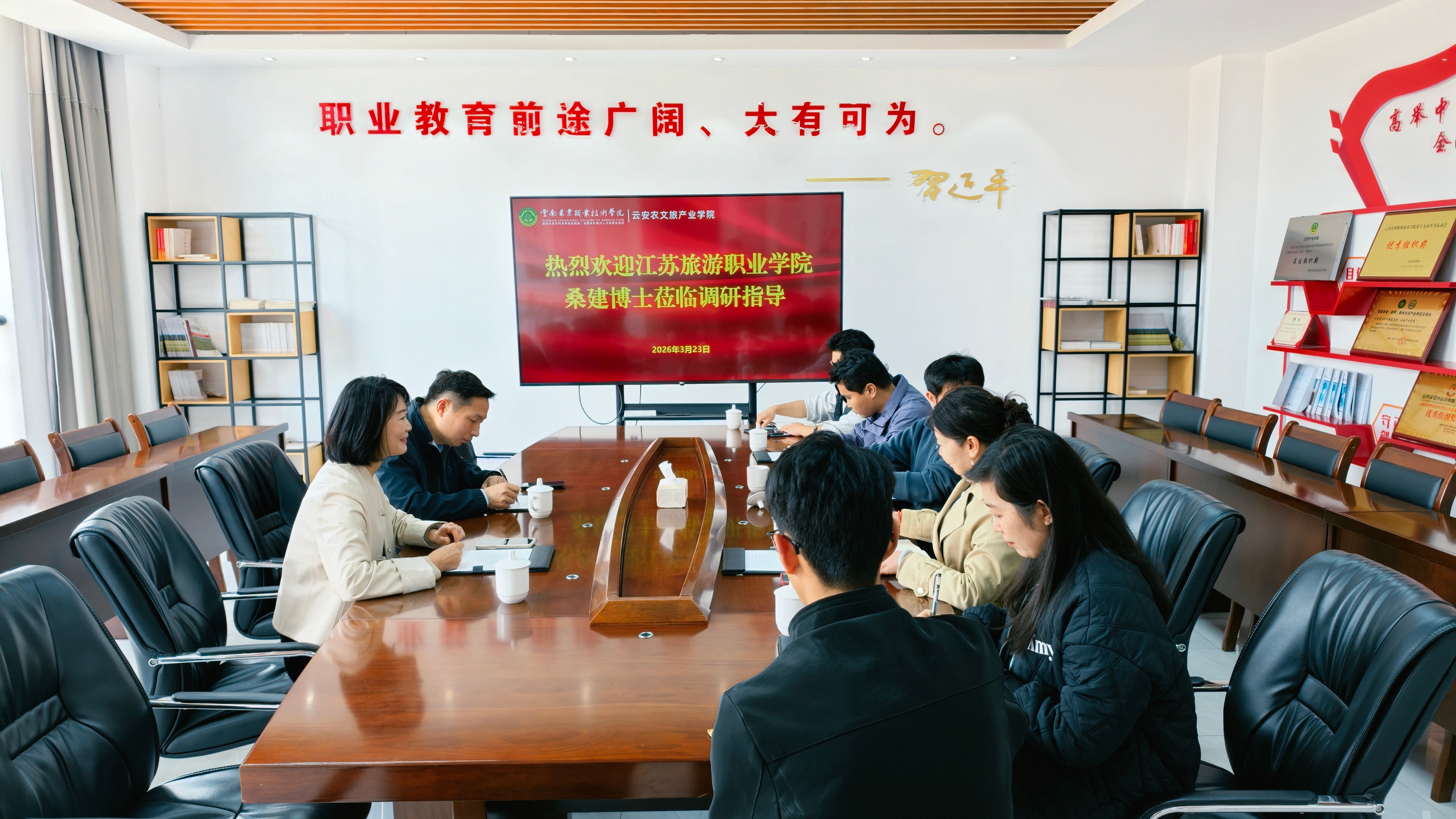3月23日,江苏旅游职业学院食品与健康产业研究院院长、桑建博士莅临云南农业职业技术学院云安农文旅产业学院调研指导,围绕烹饪教育发展、产教融合深化开展交流,云安农文旅产业学院院长张杜娟、党总支副书记张业清、副院长王雪莲及相关专业负责人、教师参与座谈。