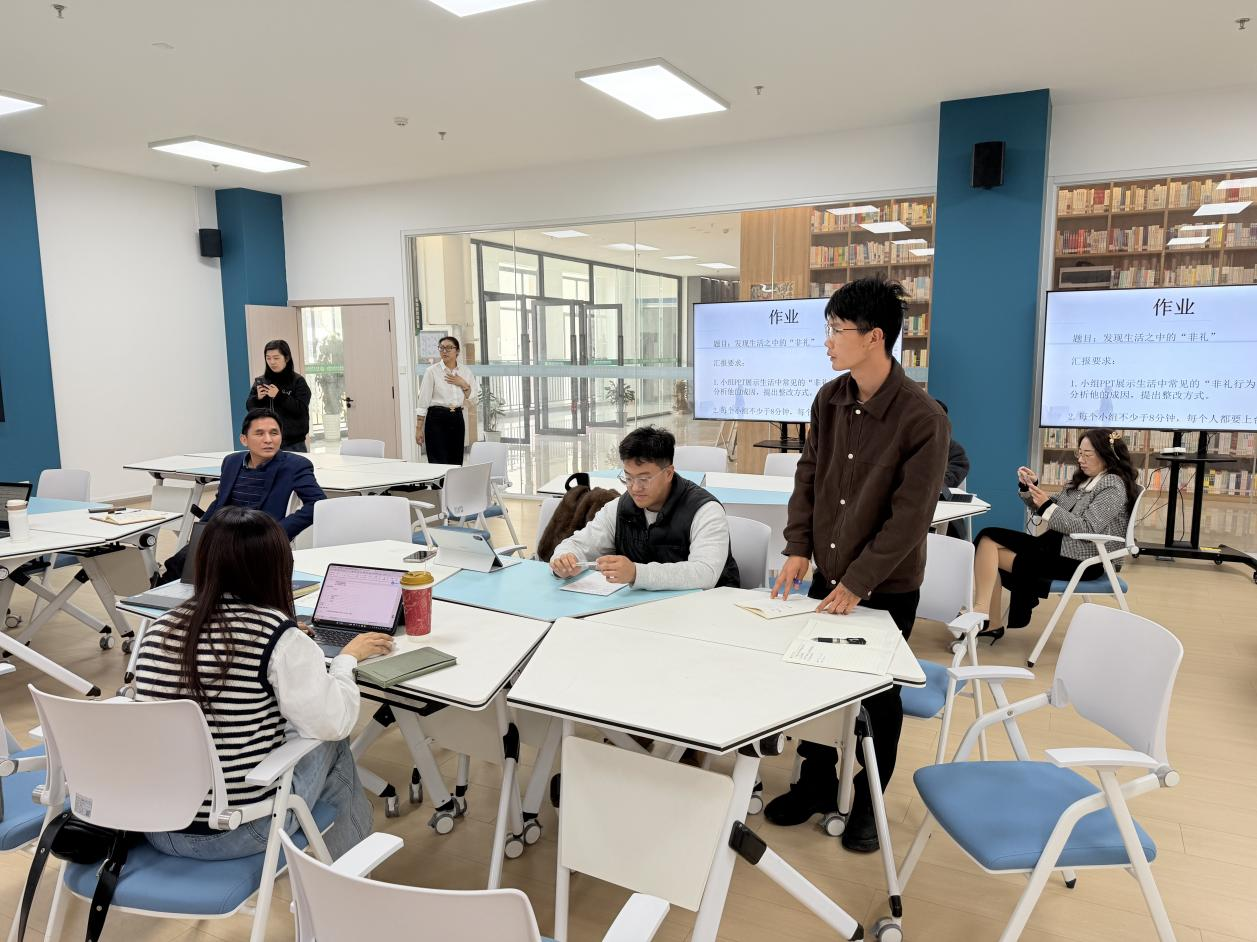 专题研讨阶段,团队成员聚焦教学四要件规范、学习通平台使用、教案模板优化等教学实际问题展开讨论。王雪莲副院长对四要件规范性作出明确要求。大家一致认为,教学四要件是教学的纲领性文件,必须确保其规范性与完整性;在备课与教学设计中,应依据课程标准分解课时目标,合理规划教学环节,并与学习通平台深度联动。针对教师在使用学习通建课过程中遇到的困惑,团队明确了线上教学平台的定位,强调应以学生学习成果为中心,合理整合与放置教学资源。此外,针对现有教案模板操作不便的问题,团队将积极向教学办反馈,争取协调解决,为教师减负增效。