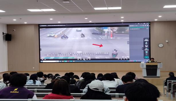 交管大队二中队高警官结合校园周边交通环境特点,组织在场人员集中观看了交通安全警示系列视频,通过校园周边非机动车违规骑行、校门口横穿道路、超速行驶、违规载人等本地典型事故案例视频,直观还原事故发生全过程,深度拆解事故发生的核心诱因与惨痛后果,让在场人员直面交通违法违规行为的严重危害。高警官结合案例内容,围绕非机动车安全骑行规范、校园周边道路通行规则、教职员工及学生通勤出行安全注意事项等内容开展系统讲解,明确了校园内及校门口道路的车辆通行、停放管理要求,全方位筑牢交通安全思想防线。