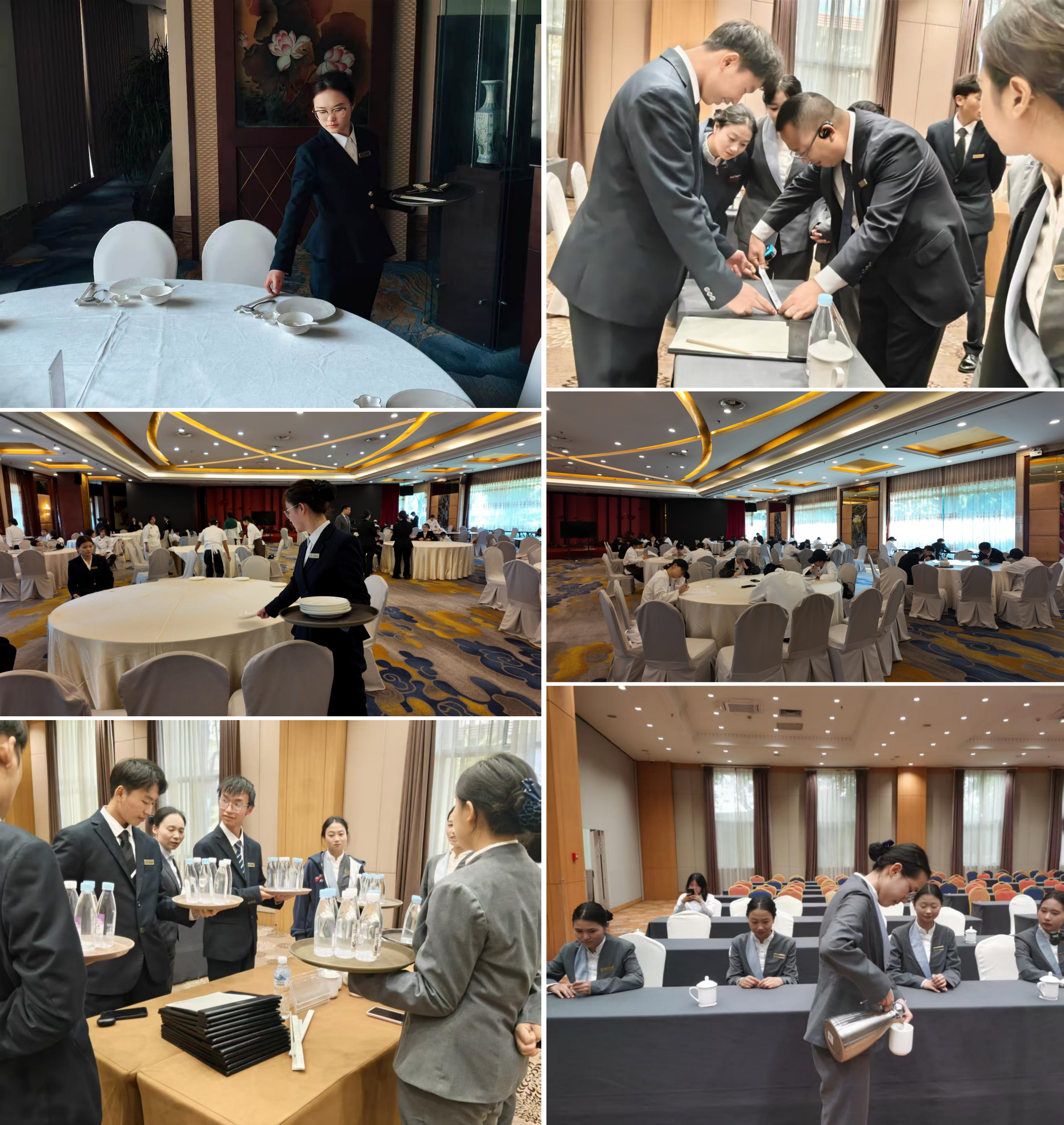 目前,实践已顺利完成第一周学习训练,3月25日上午,学生们在昆明云安会都酒店贵宾楼3楼宴会厅完成首周阶段性考核,各岗位分岗实操成果显著。