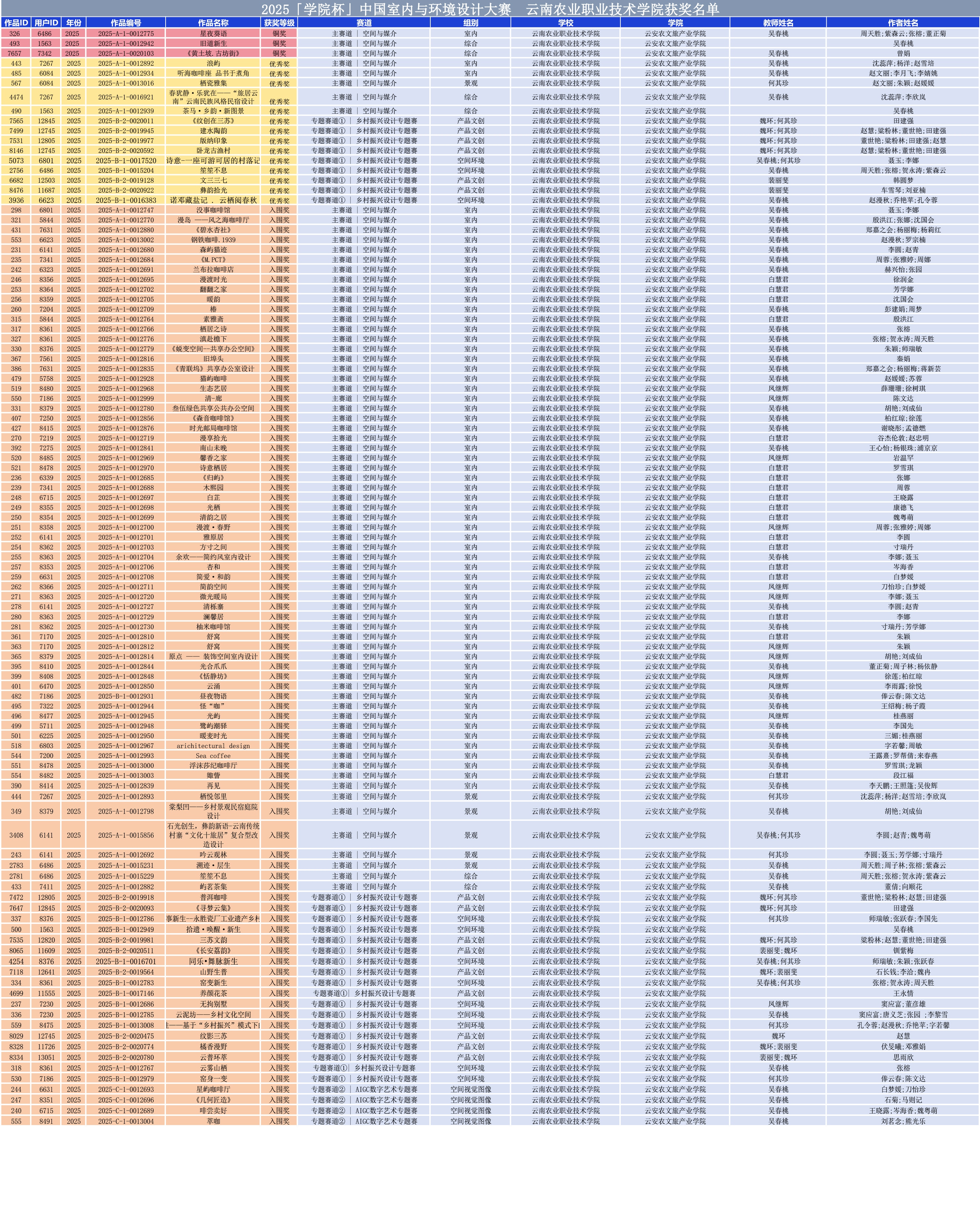 学院全部获奖作品名单